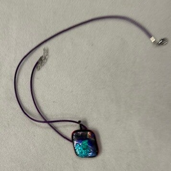 Dichroic Glass Pendant, Multi Glitter, 1 1/8" x 1" purple chain with lobster clasp