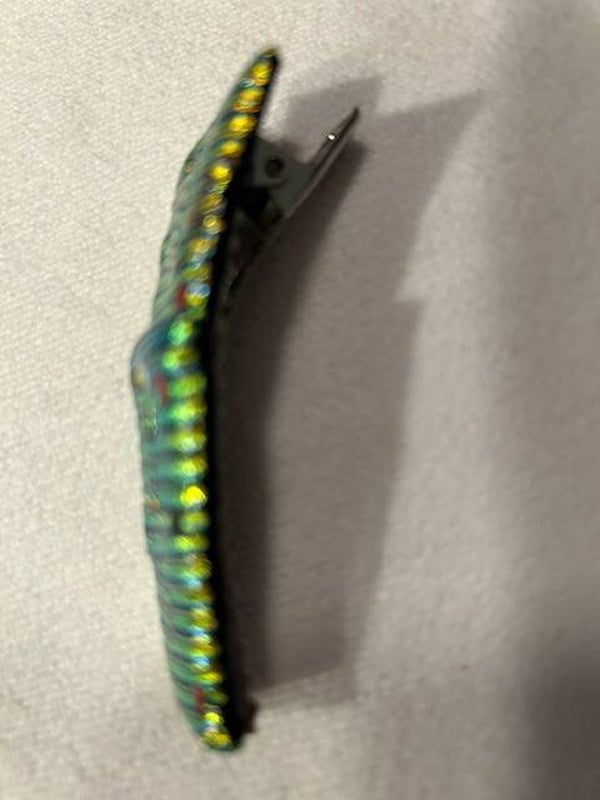 Dichroic Glass Clip Barrett Gold with stripes red and black flecks